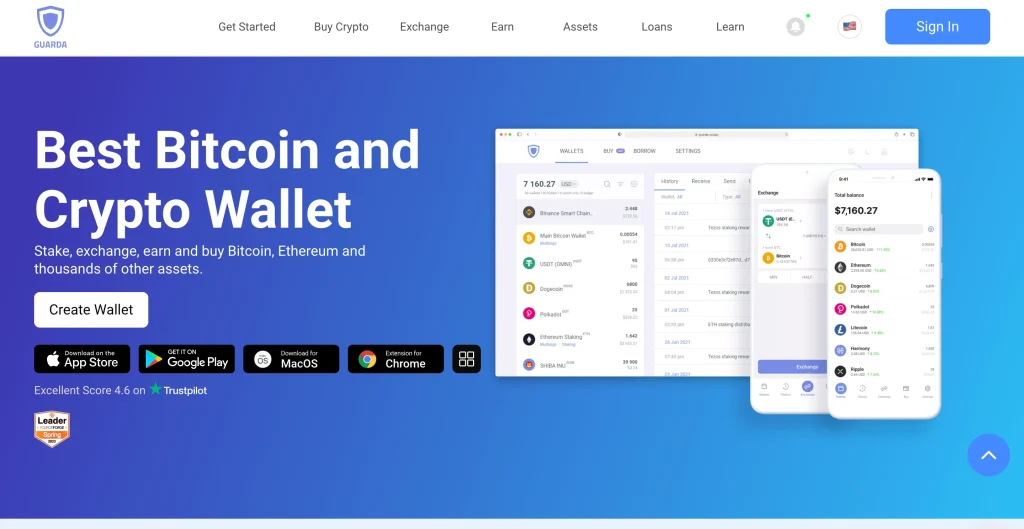 | Guarda Wallet | Best for Multi-Device Access Platform: Web, Desktop (Win/Mac/Linux), iOS, Android, Chrome extension; Security: Non-custodial, encrypted local storage; Advantage: Cross-device use + Ledger integration; Price: Free (extra fees for swaps/fiat). |